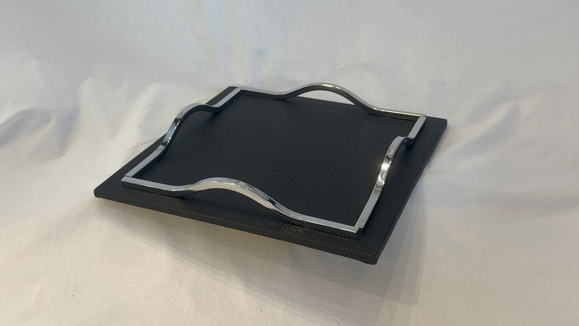 Plateau rectangulaire en métal et PU. Plateau de présentation raffiné.