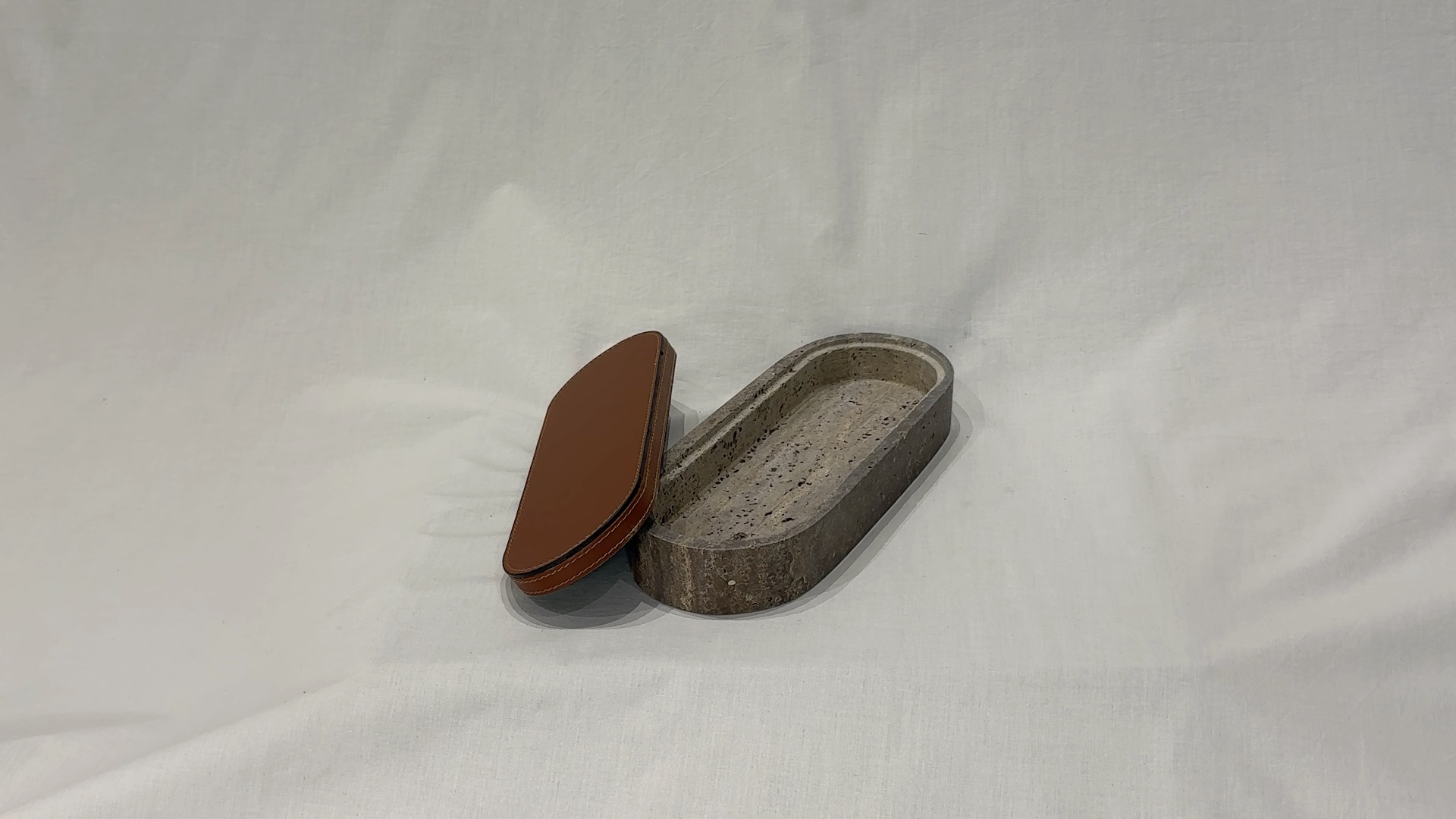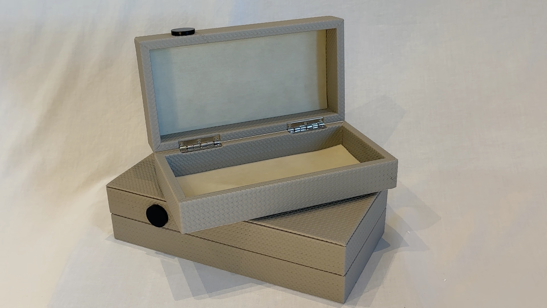 Boîte de rangement métal et cuir blanc