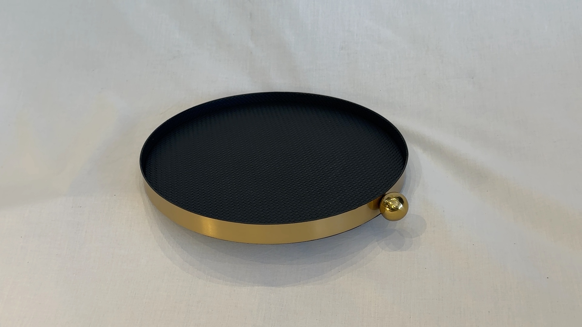 Plateau en métal et cuir. Grande taille, idéal pour le service.