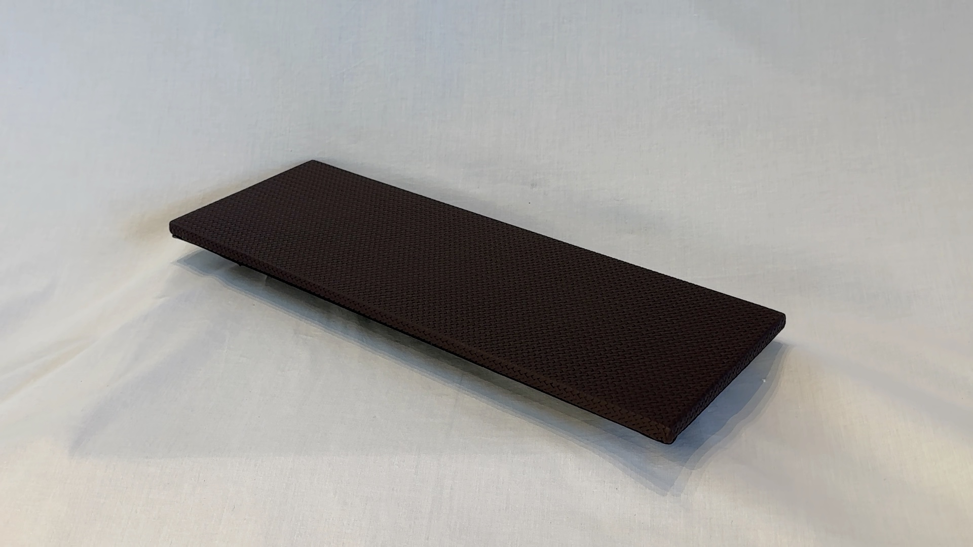Plateau en métal et cuir. Forme carrée, moderne et fonctionnelle.