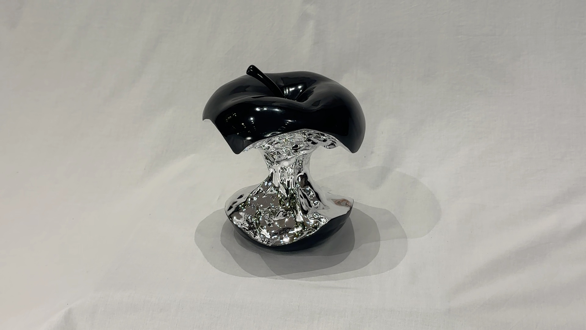 Objet décoratif en métal. Forme sculpturale, finition métallique.