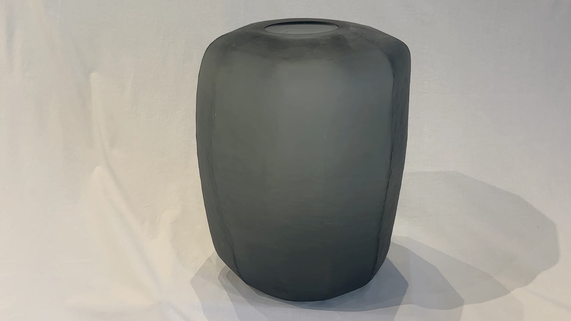 Vase en métal et verre. Grand modèle, design alliant métal et transparence.