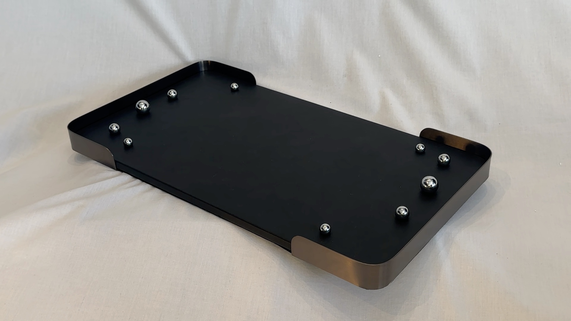 Plateau en bois et crin de cheval. Service élégant et texturé.