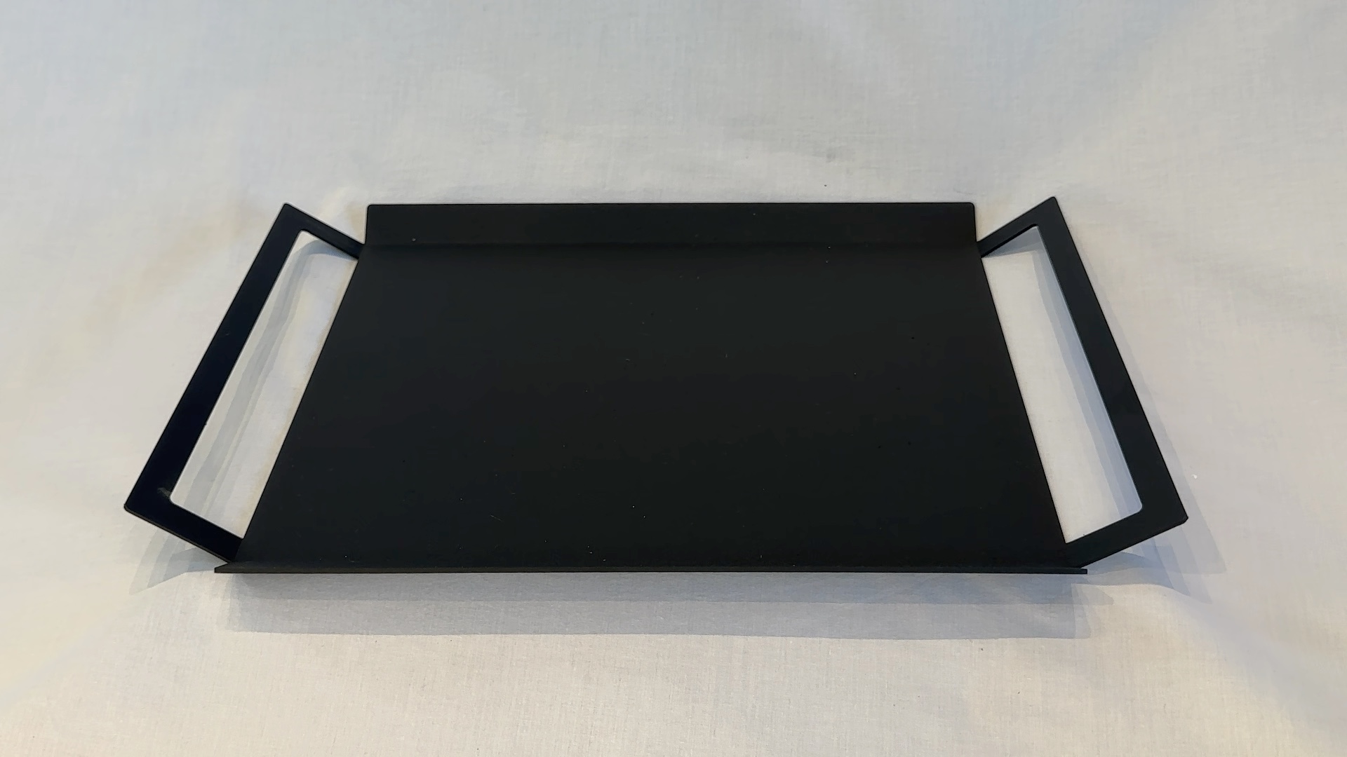 Plateau en métal. Format moyen, pratique avec rebords.