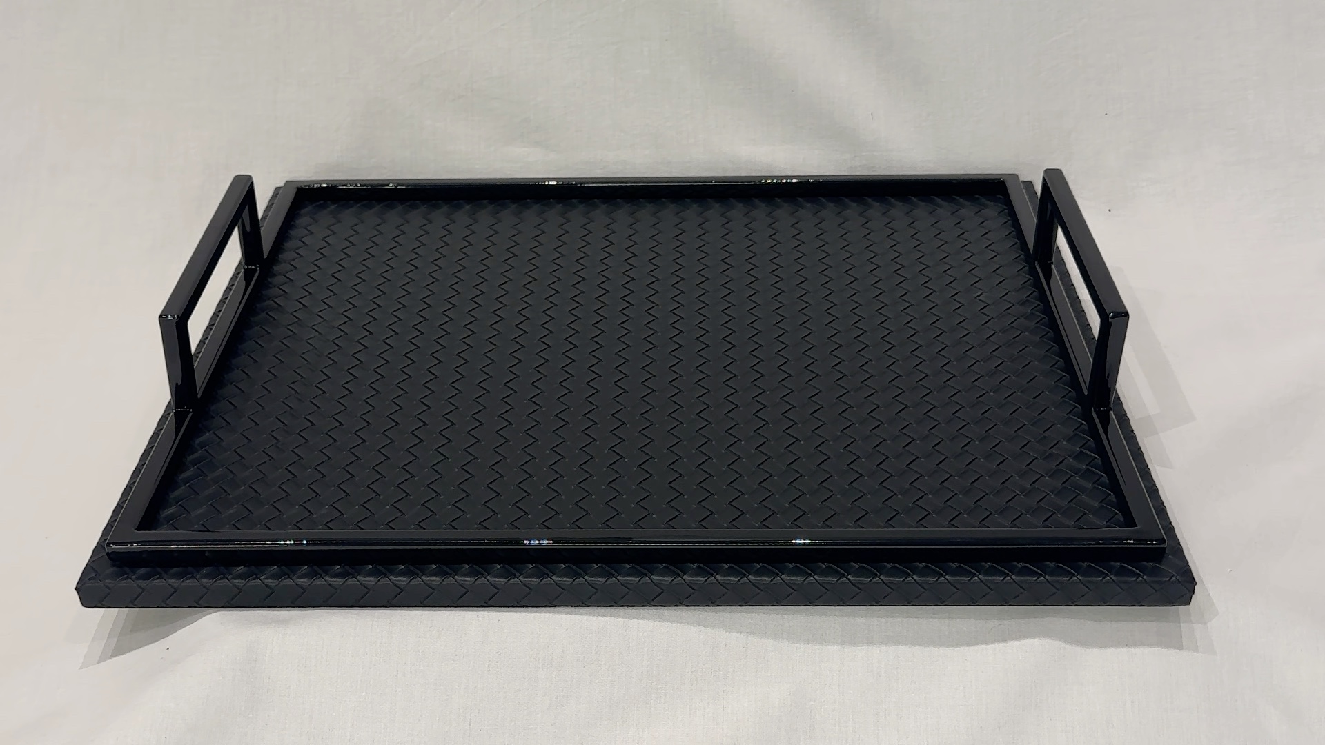 Plateau en métal et cuir. Plateau de service rectangulaire.