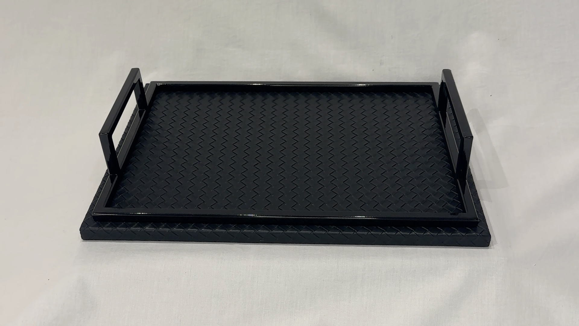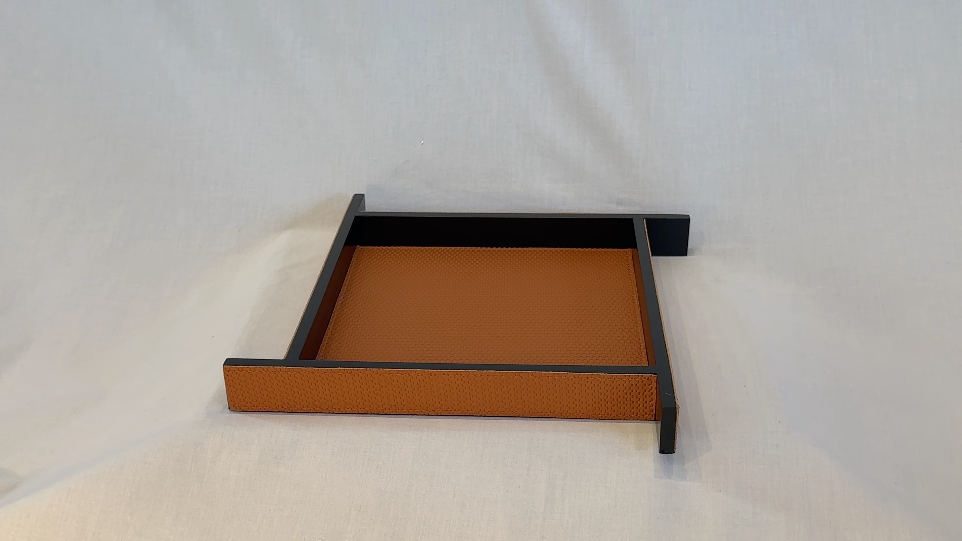 Plateau en bois et crin de cheval. Texture luxueuse pour un service raffiné.