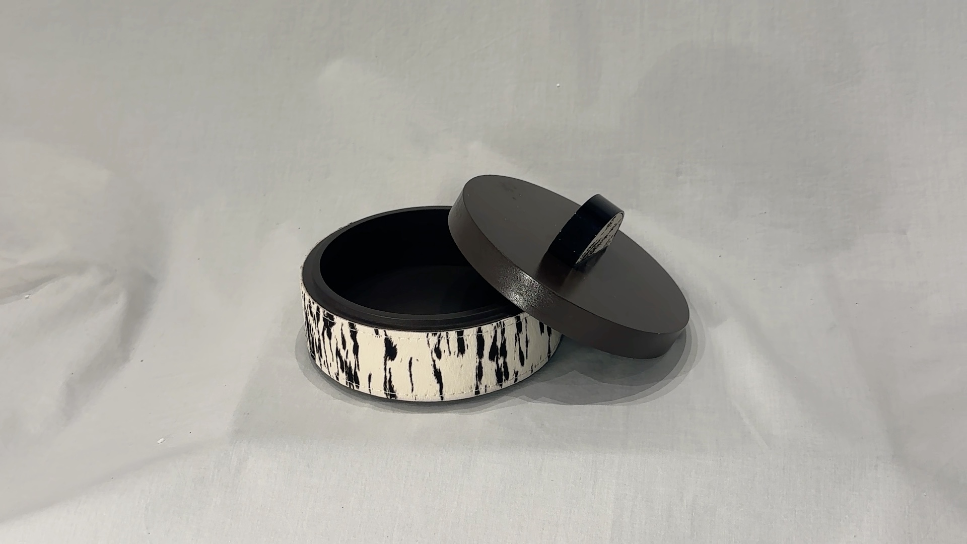 Boîte en métal et PU. Petite boîte cylindrique.