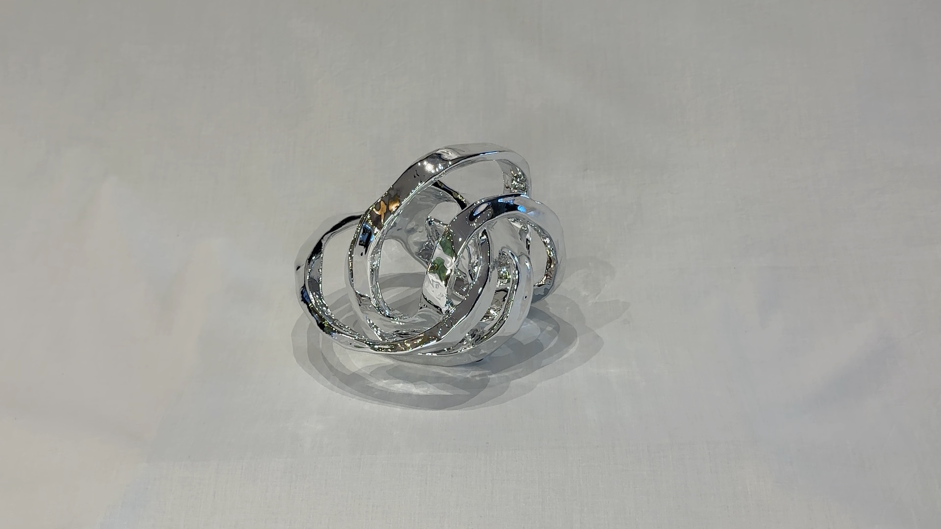 Objet décoratif en métal. Forme sculpturale, finition métallique.