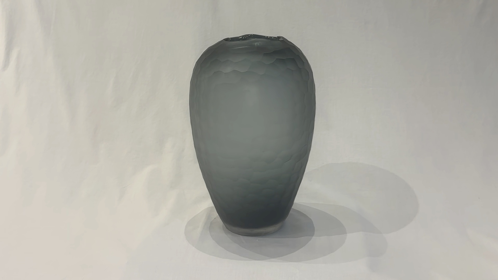 Vase en métal et verre. Grand modèle, design alliant métal et transparence.